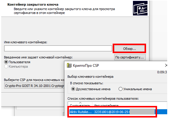 3.2 Нажать «Обзор», выбрать Имя контейнера.