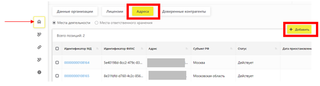 11. Выбрать «Профиль», на вкладке «Адреса» добавить адреса аптек
